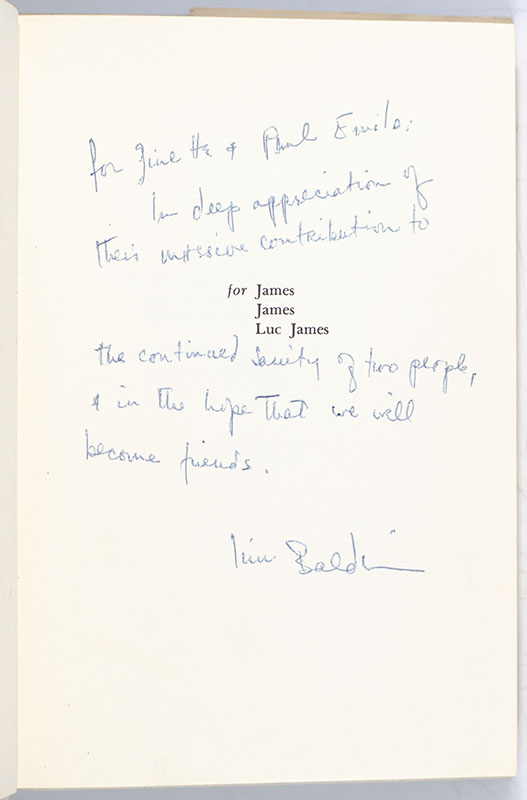 "In deep appreciation of their impressive contribution to the continued sanity of two people, & in the hope that we will become friends": James Baldwin's The Fire Next Time; lengthily inscribed by Him