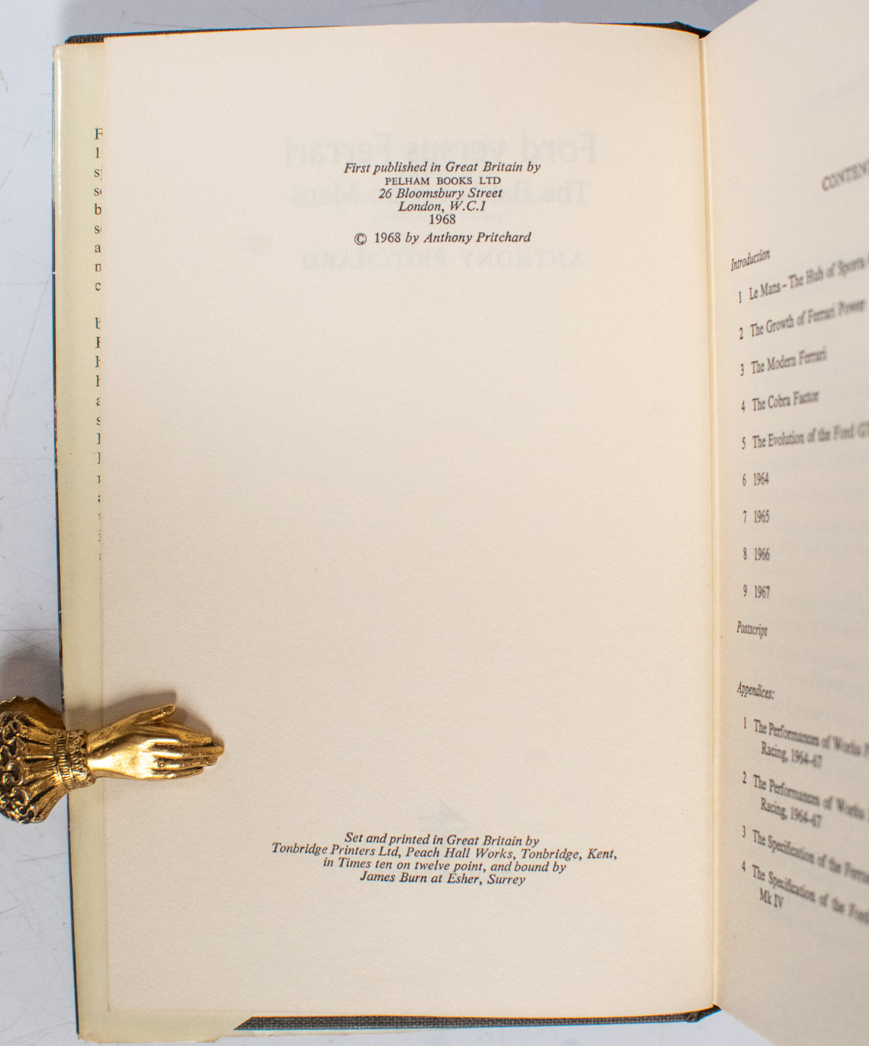 In the present volume, well-known motor journalist Anthony Pritchard tells the full story of how the Ferrari and Ford teams have performed at Le Mans through an in-depth exploration of their motivations, manufacturing processes, racing departments, leadership, teams, and, of course, cars. The book was adapted into the 2019 American sports drama film Ford v Ferrari directed by James Mangold and starring Matt Damon and Christian Bale, with Jon Bernthal, Caitriona Balfe, Tracy Letts, Josh Lucas, Noah Jupe, Remo Girone, and Ray McKinnon in supporting roles.