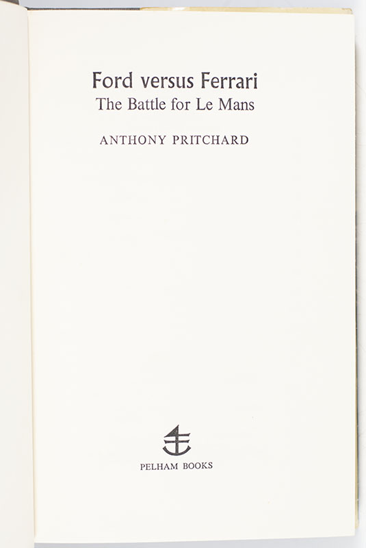 "The Grand Prix d'Entrance du Mans is deservedly the world's most famous long-distance motor race": Rare First edition of Anthony Pritchard's Ford versus Ferrari; Signed by Academy Award-Winning Actors Matt Damon and Christian Bale