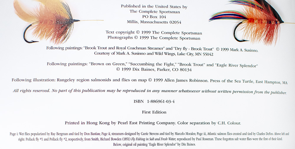 First edition of this tribute to the humble craft of American fly tying. Folio, original black cloth, illustrated with full color paintings and photographs taken by the authors throughout. Boldly signed by Paul Schmookler and Ingrid V. Sils on the front free endpaper. Fine in a fine dust jacket. Uncommon signed.