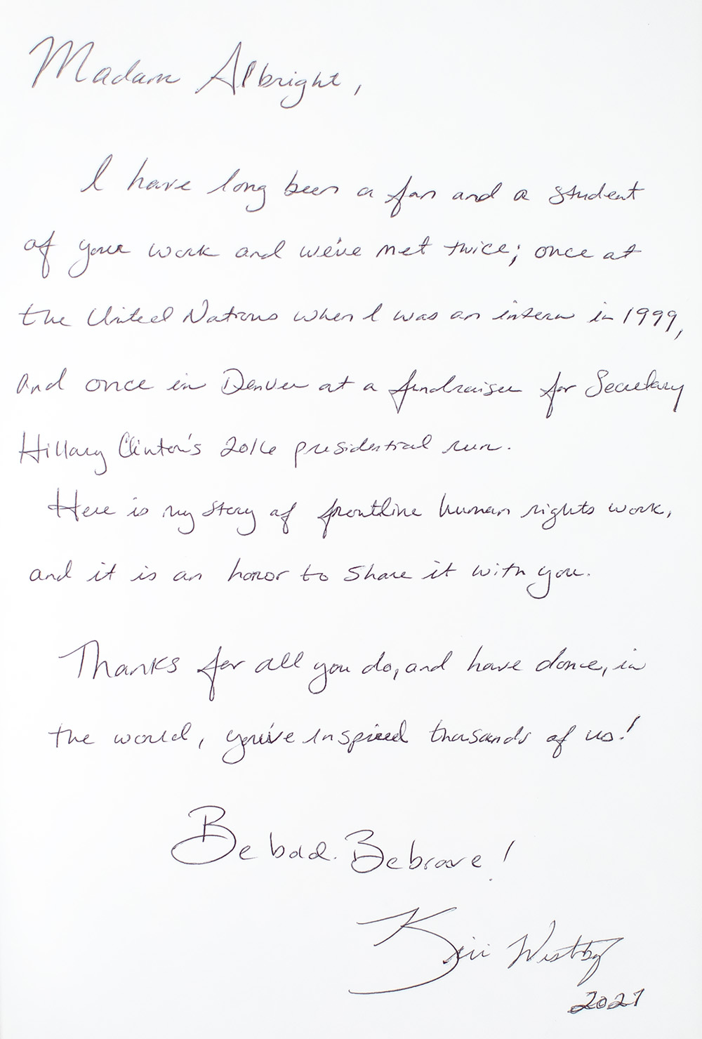 First Edition of Fortune Favors the Brave; Inscribed by Human Rights Activist Kiri Westby to Secretary Madeleine K. Albright