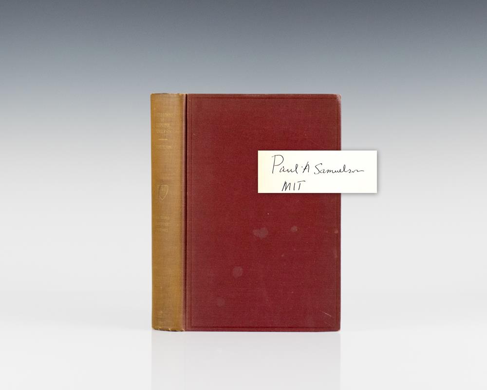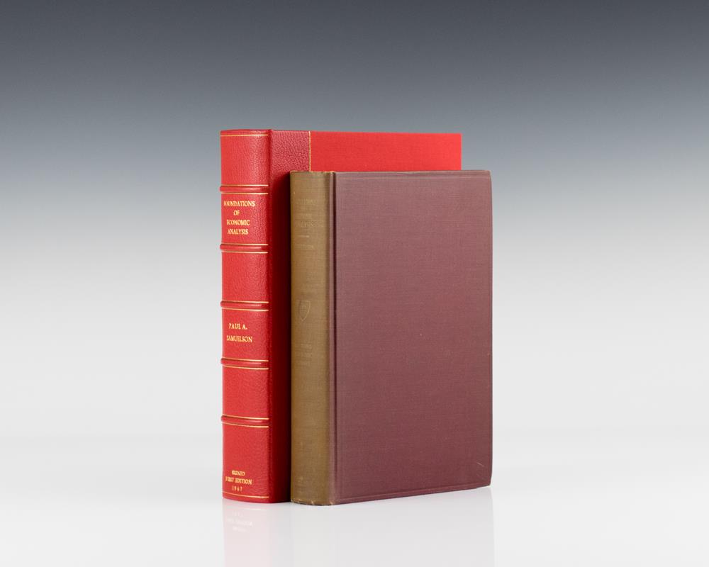 First edition of the Nobel Prize-winning economist’s magnum opus and one of the most influential economic texts of the twentieth century. Octavo, original burgundy cloth with titles in gilt. Signed "Paul A. Samuelson MIT" on the title page. An excellent example with light wear to the cloth, some toning to the spine, near fine. Housed in a custom half morocco clamshell box.