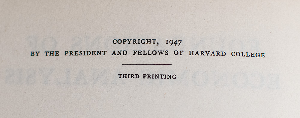 "Mathematics Is A Language": Paul Samuelsons Foundations Of Analysis; Signed By Him