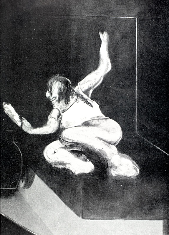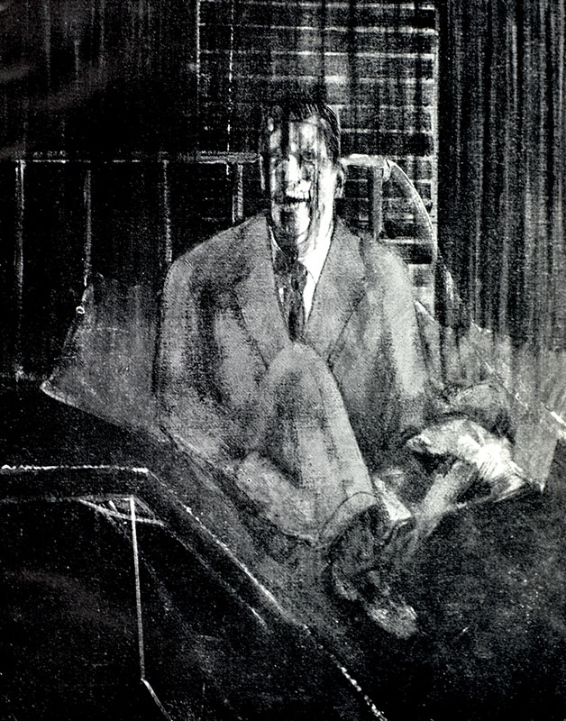 Francis Bacon was a figurative painter known for his emotionally charged raw imagery and fixation on personal motifs. Best known for his depictions of popes, crucifixions and portraits of close friends, his abstracted figures are typically isolated in geometrical cages which give them vague 3D depth, set against flat, nondescript backgrounds. Bacon said that he saw images "in series", and his work, which numbers c. 590 extant paintings along with many others he destroyed, typically focuses on a single subject for sustained periods, often in triptych or diptych formats. His output can be broadly described as sequences or variations on single motifs; including the 1930s Picasso-influenced bio-morphs and Furies, the 1940s male heads isolated in rooms or geometric structures, the 1950s screaming popes, the mid-to-late 1950s animals and lone figures, the early 1960s crucifixions, the mid to late 1960s portraits of friends, the 1970s self-portraits, and the cooler more technical 1980s paintings. Bacon took up painting in his twenties, having drifted in the late 1920s and early 1930s as an interior decorator, bon vivant and gambler. He said that his artistic career was delayed because he spent too long looking for subject matter that could sustain his interest. His breakthrough came with the 1944 triptych Three Studies for Figures at the Base of a Crucifixion, which sealed his reputation as a uniquely bleak chronicler of the human condition. From the mid-1960s he mainly produced portraits of friends and drinking companions, either as single or triptych panels. Following the suicide of his lover George Dyer in 1971 his art became more sombre, inward-looking and preoccupied with the passage of time and death. The climax of this later period is marked by masterpieces, including his 1982's "Study for Self-Portrait" and Study for a Self-Portrait—Triptych, 1985–86.