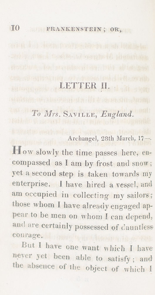 First published in 1818, Frankenstein is not only the "most famous English horror novel" but also, by some critics' reckoning, "the first genuine science fiction novel" (Clute & Nicholls, 1099). The circumstances of its composition are by now well known: 19-year old Mary was in Switzerland with Percy Shelley, Byron, and Byron's physician John Polidori on that famous evening in 1816 when the discussion turned to one of Shelley's favorite topics, the supernatural. Byron proposed that all members of the party write a romance or tale dealing with the subject. The resulting efforts were Polidori's The Vampyre, Byron's unfinished narrative about a vampire, and Mary Shelley's Frankenstein, "the most famous English horror novel… a defining model of the Gothic mode of fiction, and… the first genuine science fiction novel, the first significant rendering of the relations between mankind and science through an image of mankind's dual nature appropriate to an age of science" (Clute and Nicholls, Encyclopedia of Science Fiction, 1099). At base, the novel is one of creative powers gone wrong-a subject of paramount concern to Mary Shelley, as her own mother had died as a result of Shelley's birth, and the year before writing Frankenstein, she lost her own daughter, Clare. Published anonymously on January 1st 1818 in a run of only 500 copies, the first edition included a preface written by Percy Shelley and a dedication to the author’s father, William Godwin. Its narrative, of a living being fashioned with materials found in "the dissecting room and the slaughter-house" and rejected by its maker, has now reached the same mythic cultural status as Don Quixote and Robinson Crusoe. Yet the reviews at the time were mixed, with the Quarterly Review sufficiently morally outraged to wonder "whether the head or the heart of the author be the most diseased," while Walter Scott praised her “original genius” and “uncommon powers of poetic imagination.”