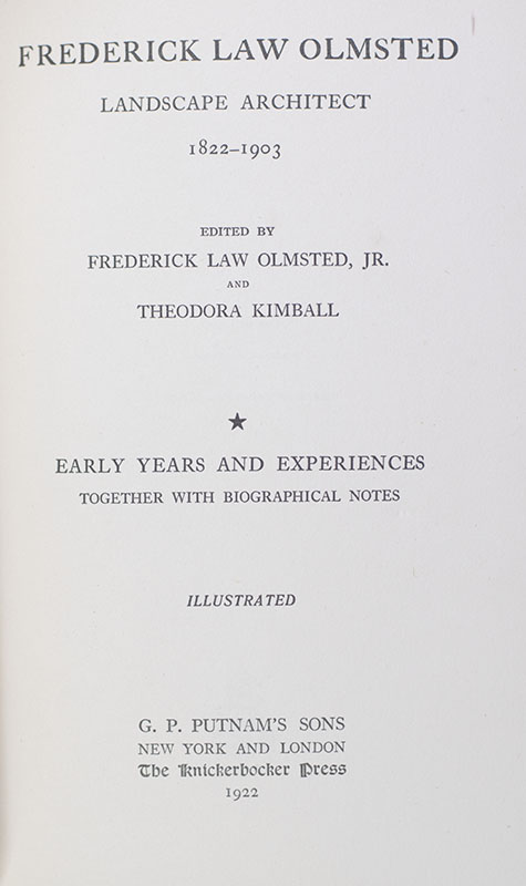 Frederick Law Olmsted: Landscape Architect 1822-1903: Early Years and Experiences Together with Biographical Notes.