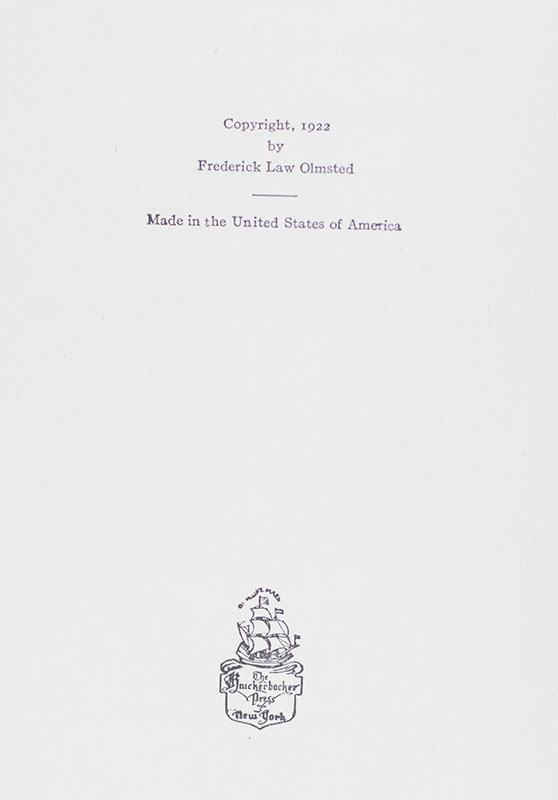 OLMSTED, Frederick Law. Edited by Frederick Law Olmsted Jr. and Theodora Kimball.