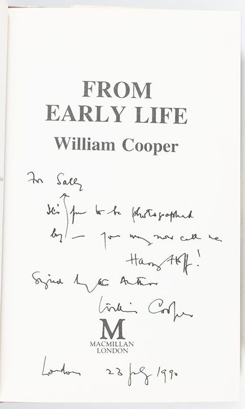 "I remember, I remember... precious little, now it comes to the crunch": First edition of William Cooper's From Early Life; inscribed by him to photographer Sally Soames