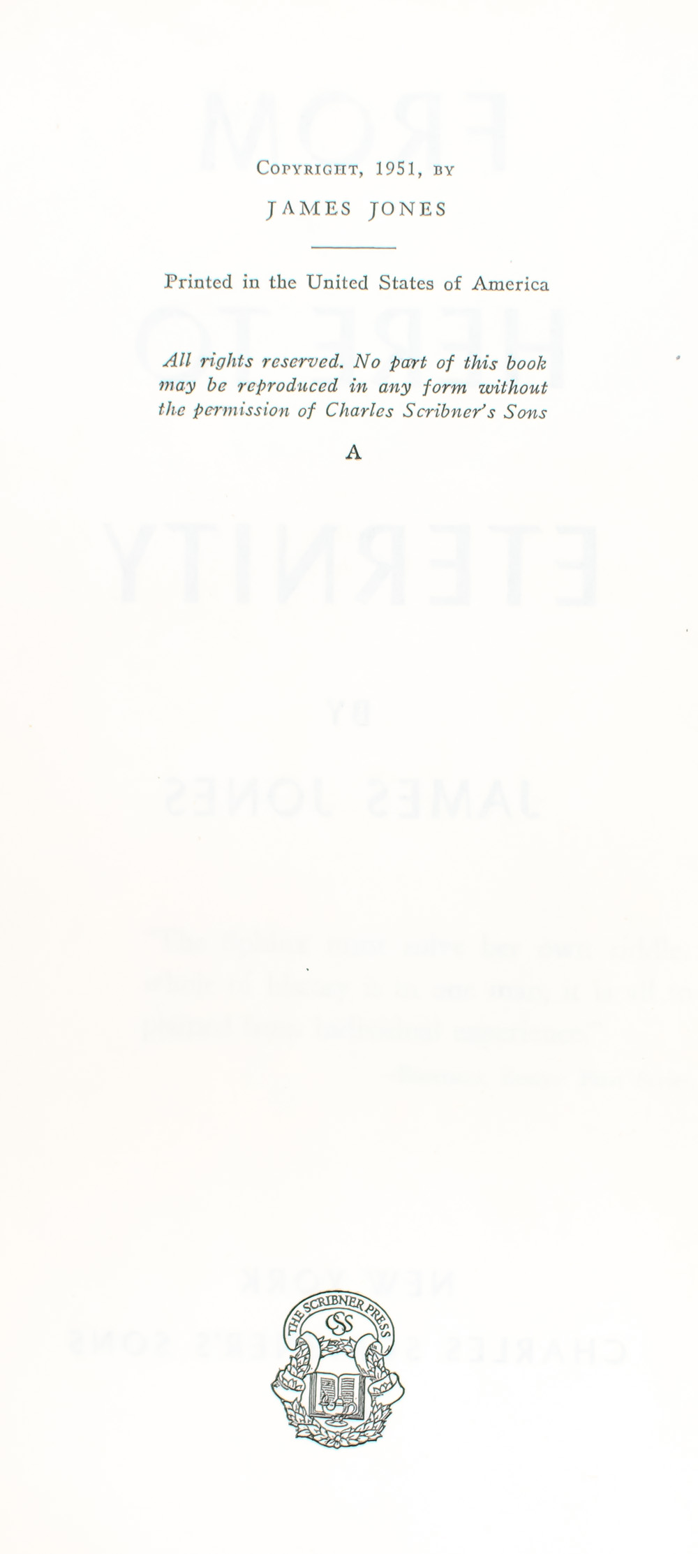 First Edition of From Here to Eternity; with cardstock James Jones's signature
