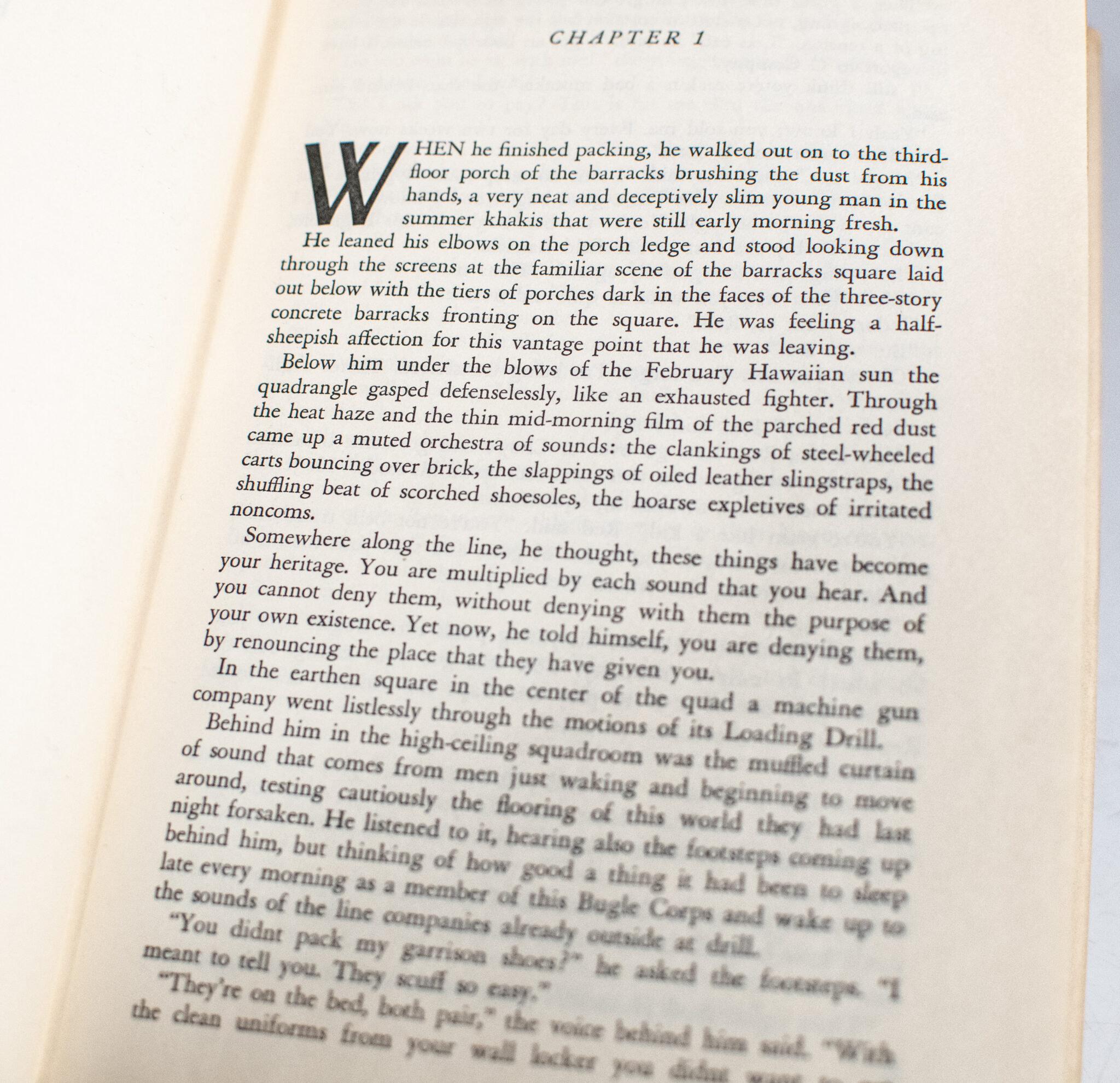 First edition of the author's first book, one of the great novels of World War II. Octavo, original cloth with gilt titles to the spine. Boldly signed by James Jones. Fine in a near fine dust jacket. Jacket design by SKA. Jacket photograph by Pat Maestro. An exceptionally bright example.