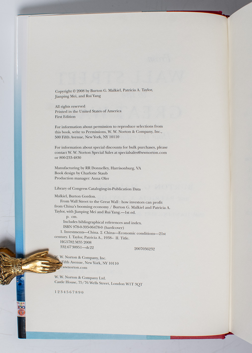 First Edition of Burton Malkiel's From Wall Street to the Great Wall; Signed by Him and from his Library