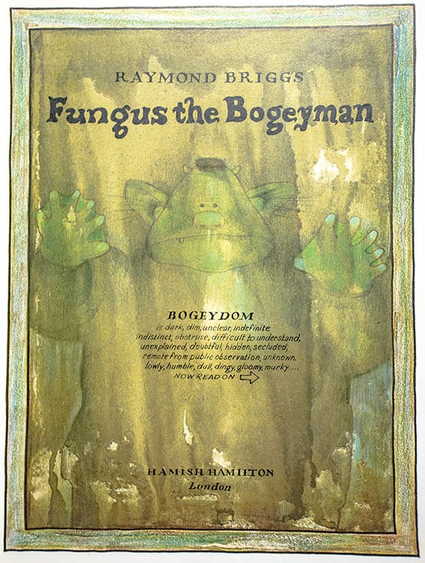 English illustrator and children's book author Raymond Briggs is best known in Britain for his 'books without words' told entirely though full color illustrations. Initially published in 1977, Fungus the Bogeyman follows one day in the life of the title character, a working class Bogeyman with the mundane job of scaring human beings.