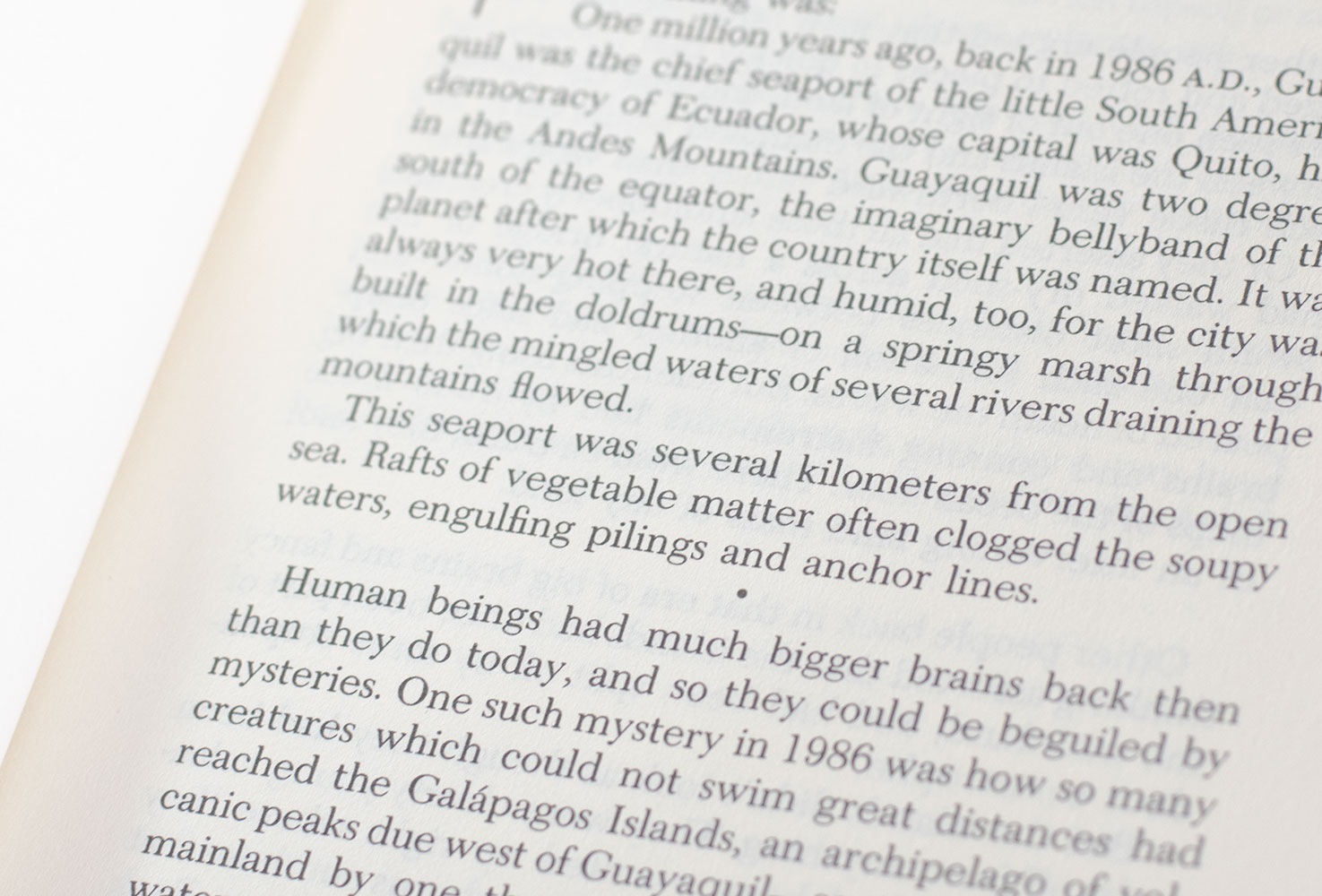 Galapagos takes the reader back one million years, to A.D. 1986. A simple vacation cruise suddenly becomes an evolutionary journey. John Irving praised it as [t]he best Vonnegut novel yet!" "A madcap genealogical adventure . . . Vonnegut is a postmodern Mark Twain" (New York Times Book Review).