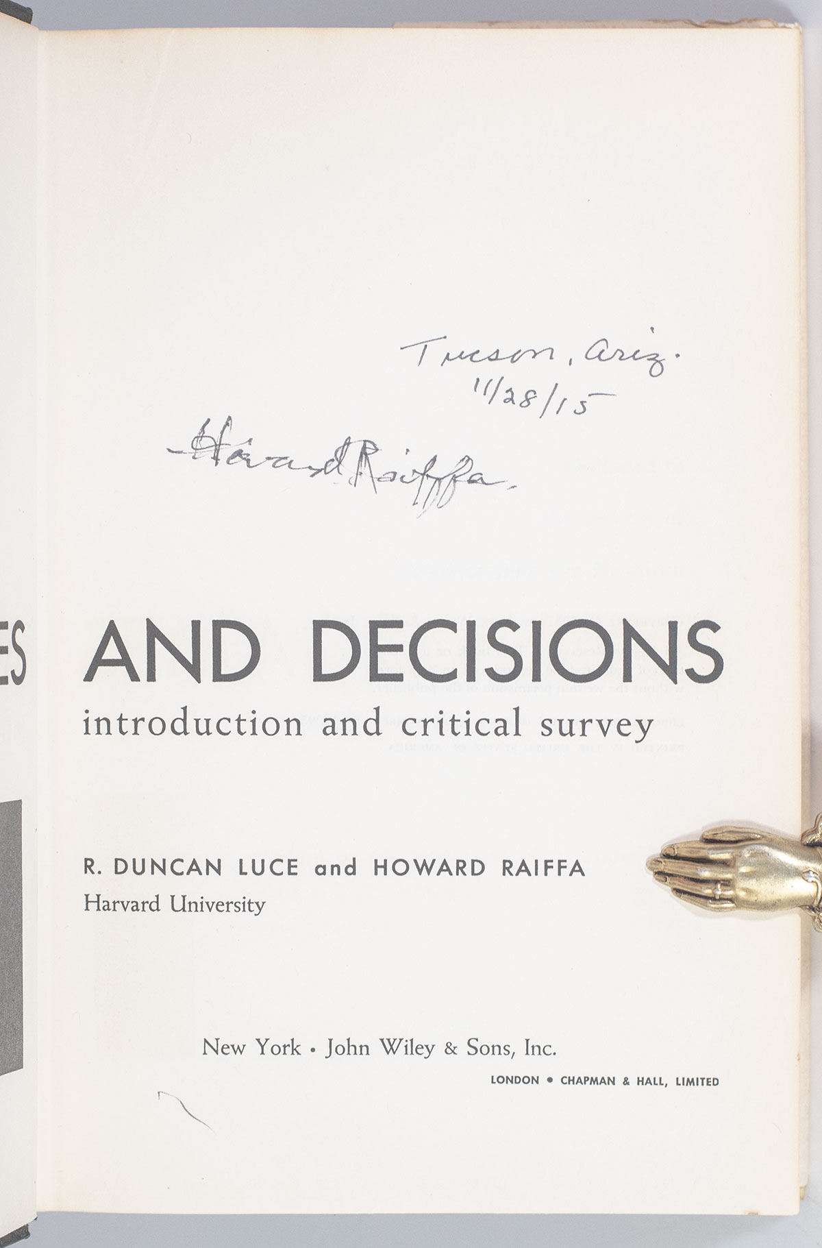 First Edition of Games and Decisions: Introduction and Critical Survey; Signed by Howard Raiffa