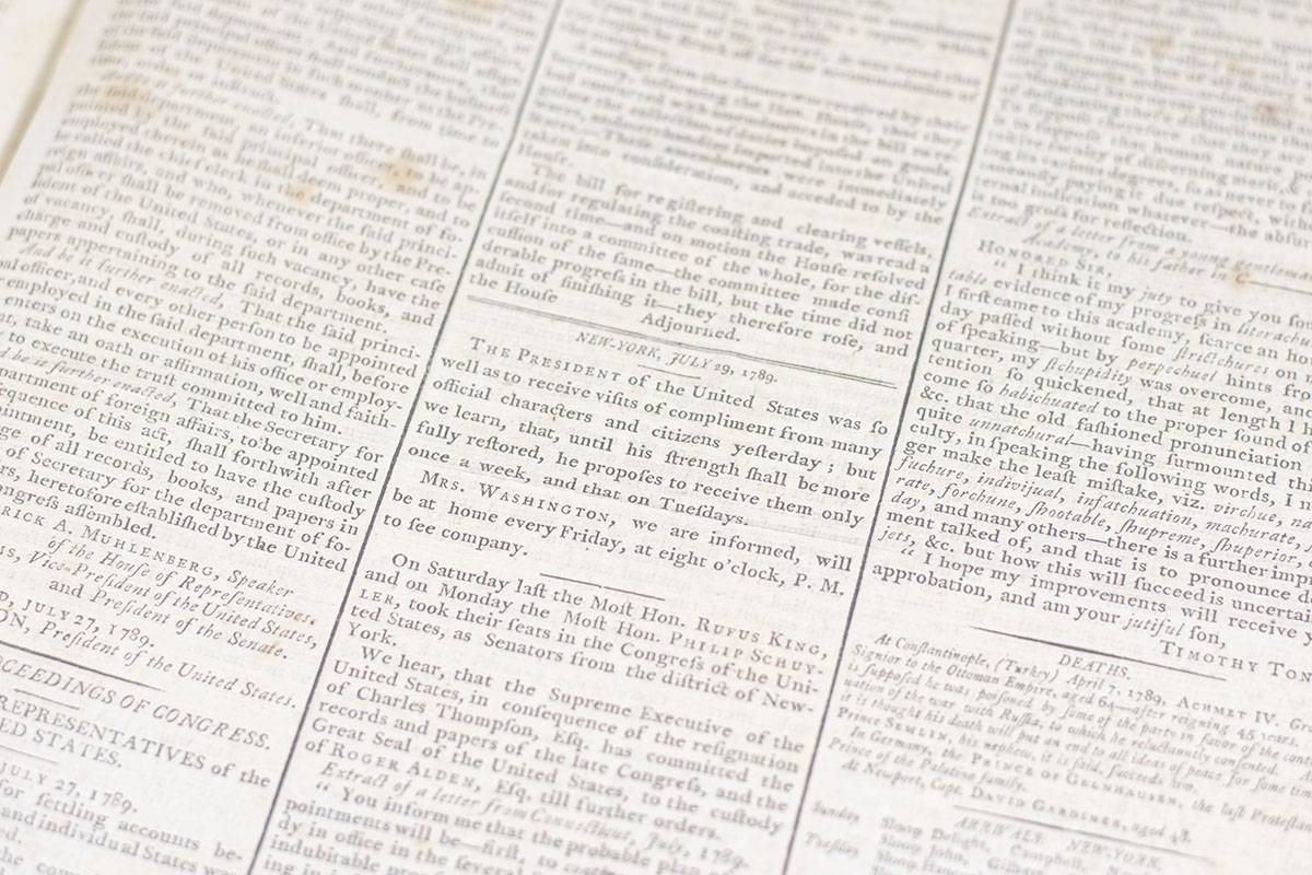 Rare original printing of The Gazette of the United States, issued on July 29, 1789