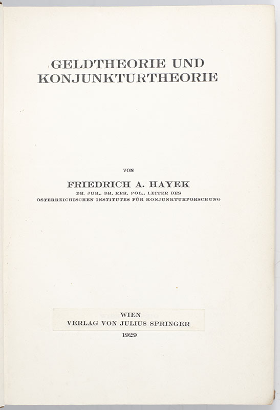Rare first edition of Hayek's first book Geldtheorie Und Konjunkturtheorie