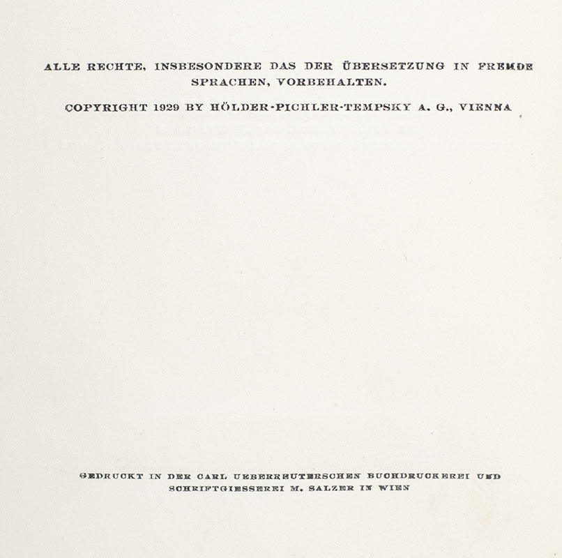 Wein und Leipzig: Holder-Pichler-Tempsky A.G, 1929.