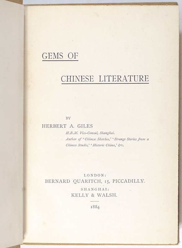 First edition of Herbert A. Giles' Gems of Chinese Literature