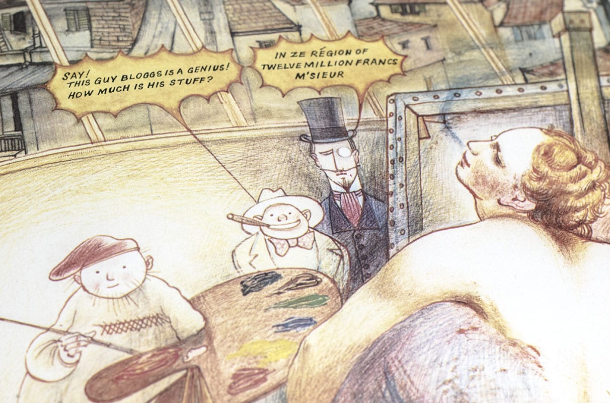 English illustrator Raymond Briggs is best known in Britain for his 'books without words', told entirely though full color illustrations. Later in his career, Briggs shifted his focus from charming children's tales to more somber adult-oriented stories including Gentleman Jim, the tale of a working class hero, and When the Wind Blows, a story confronting the horrors of nuclear war.