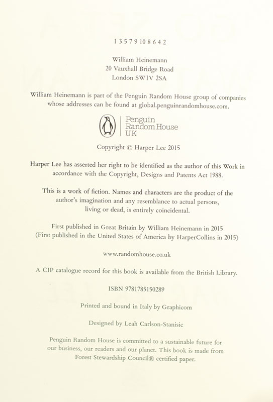 “Every man’s island, Jean Louise, every man’s watchman, is his conscience. There is no such thing as a collective conscious": Signed Limited Edition of Harper Lee's Go Set A Watchman