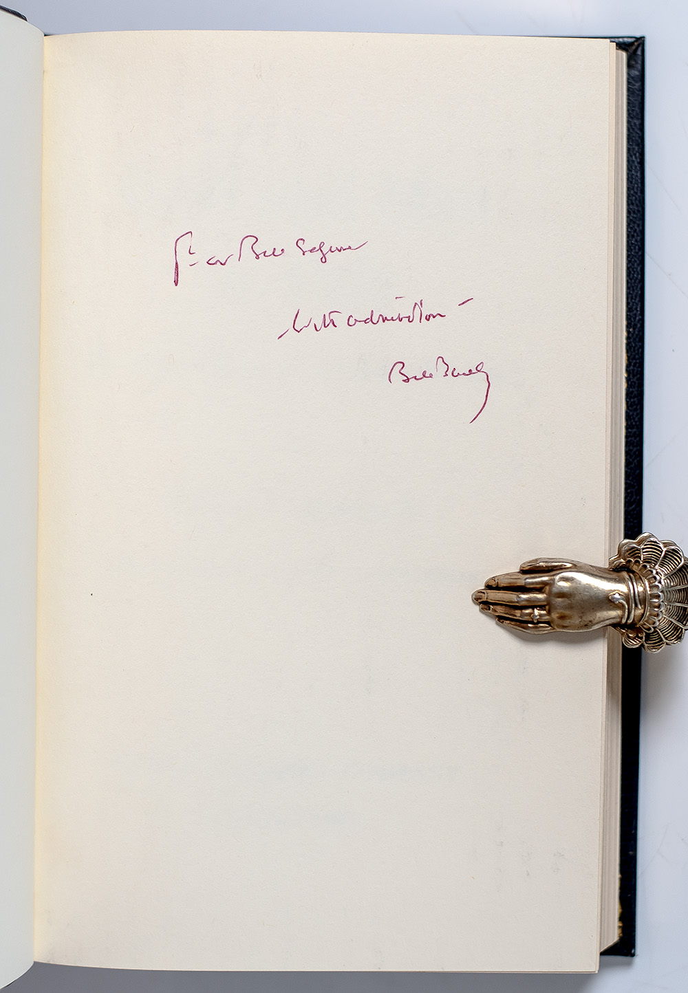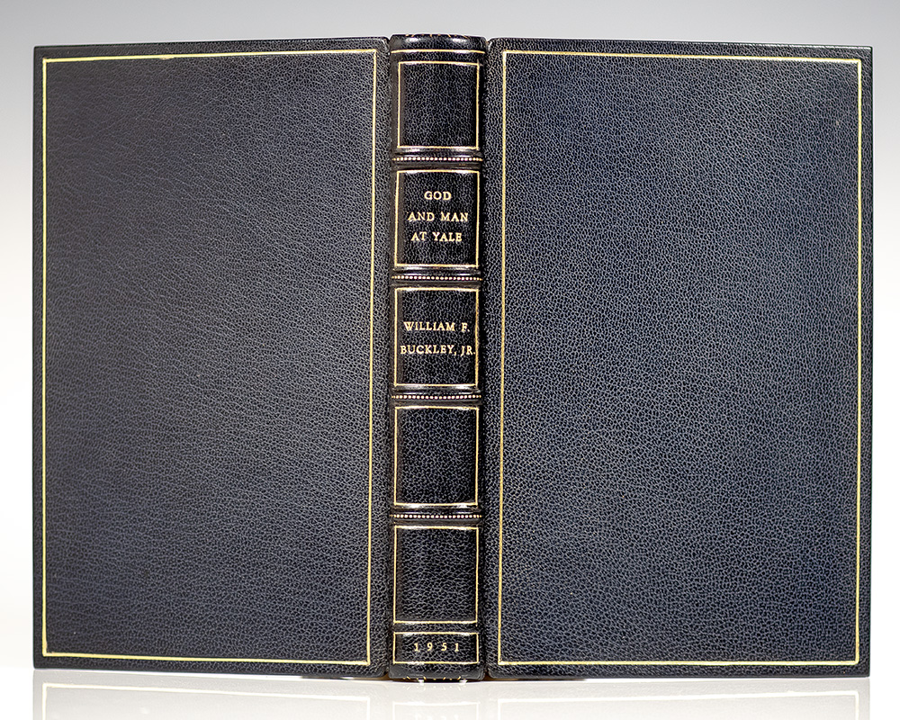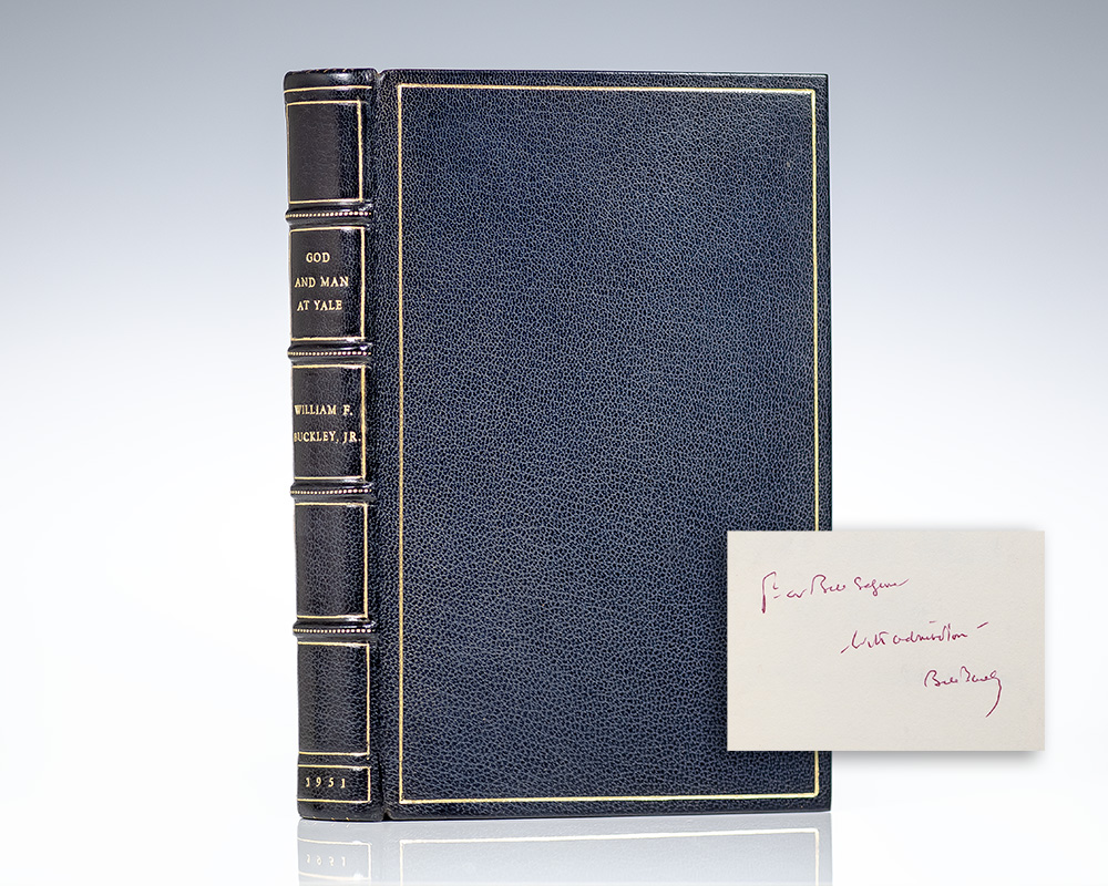 First edition of the author's first book and seminal work. Octavo, bound in full morocco by the Harcourt Bindery, gilt titles and tooling to the spine in six compartments within raised gilt bands, gilt ruling to the front and rear panels, gilt inner dentelles stamp-signed by the Harcourt Bindery, marbled endpapers, all edges gilt. Presentation copy, inscribed by the author on the bound in page, "For Bill Safire with admiration- Bill Buckley." The recipient, William Safire, was an important American author, columnist, journalist, and presidential speechwriter. He joined Nixon’s campaign for the 1960 Presidential race, and again in 1968. After Nixon’s 1968 victory, Safire served as a speechwriter for him and Spiro Agnew. He authored several political columns in addition to his weekly column “On Language” in The New York Times Magazine from 1979 until the month of his death and authored two books on grammar and linguistics: The New Language of Politics (1968) and what Zimmer called Safire’s “magnum opus,” Safire’s Political Dictionary. Safire later served as a member of the Pulitzer Prize Board from 1995 to 2004 and in 2006 was awarded the Presidential Medal of Freedom by President George W. Bush. In fine condition.