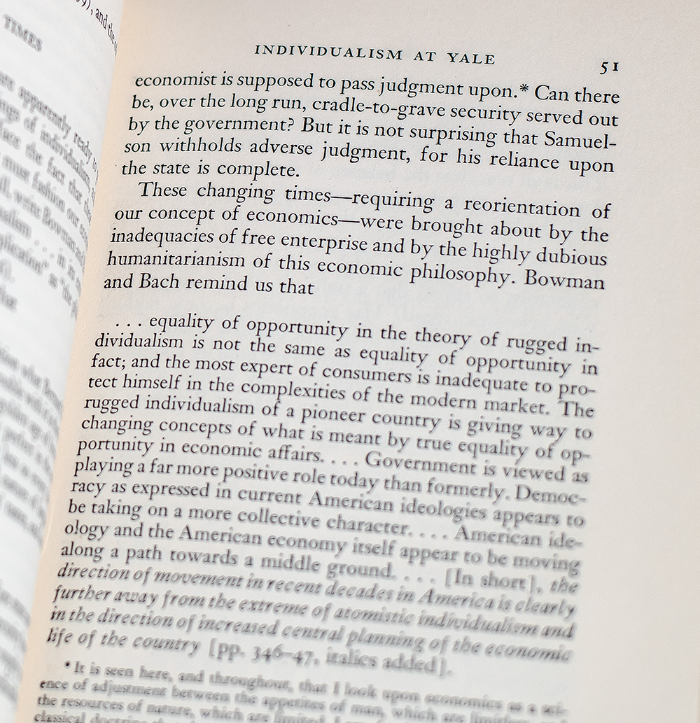 William F. Buckley’s God Man at Yale "concludes that the values inculcated at Yale ‘are agnostic as to religion, interventionist and Keynesian as to economics, and collectivist as applied to the relation of the individual to society and government A like case could be made out against the economics teaching in many other leading American universities today" (Hazlitt, The Free Man’s Library, 48). Named by TIME Magazine as one of the 100 best and most influential non-fiction books since 1923.