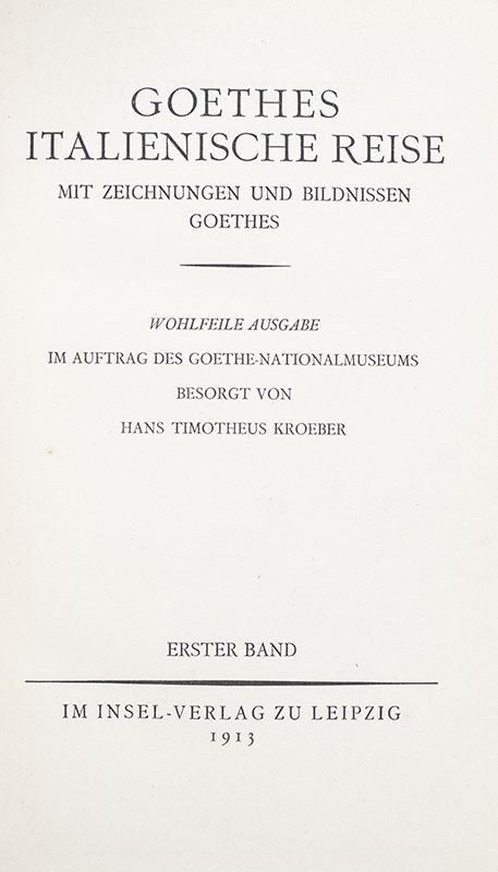 Goethes Italienische Reise Mit Zeichnungen Und Bildnissen Goethes. [Goethe's Italian Journey With Drawings And Portraits Of Goethe].