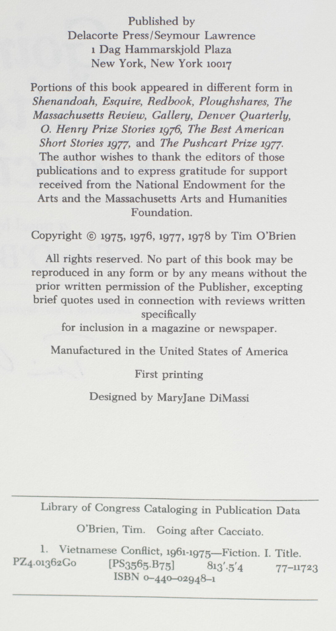 “And now it is time for a final act of courage. I urge you: March proudly into your own dream”: First Edition of Going After Cacciato; Signed by Tim O'Brien