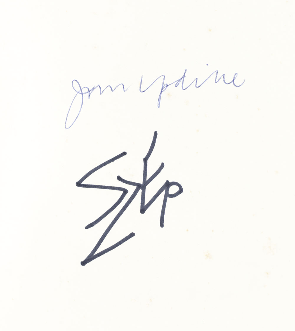 First edition of this classic collection of golf stories by John Updike. Octavo, original half cloth, illustrations by Paul Szep. Signed by John Updike and additionally signed by the illustrator, Paul Szep on the front free endpaper. Near fine in a near fine price-clipped dust jacket.