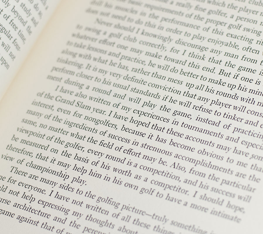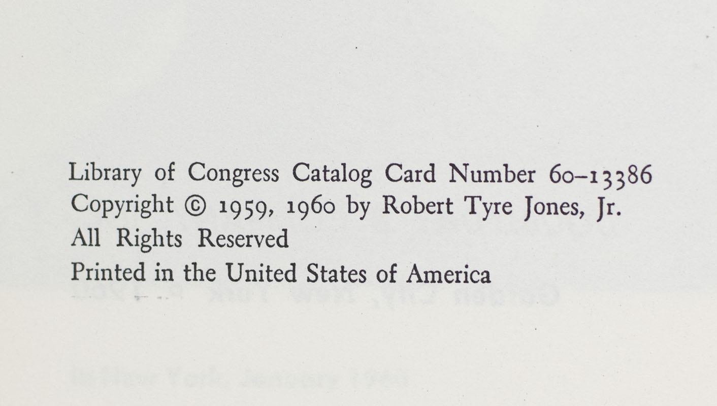 First edition, early printing of this classic golfing technique manual. Octavo, original half cloth, illustrated. Presentation copy, inscribed by the author on the front free endpaper, "For Doug Peters With best wishes Robert T. Jones Jr." Near fine in a near fine dust jacket with light rubbing. Jacket design by Ben Feder.