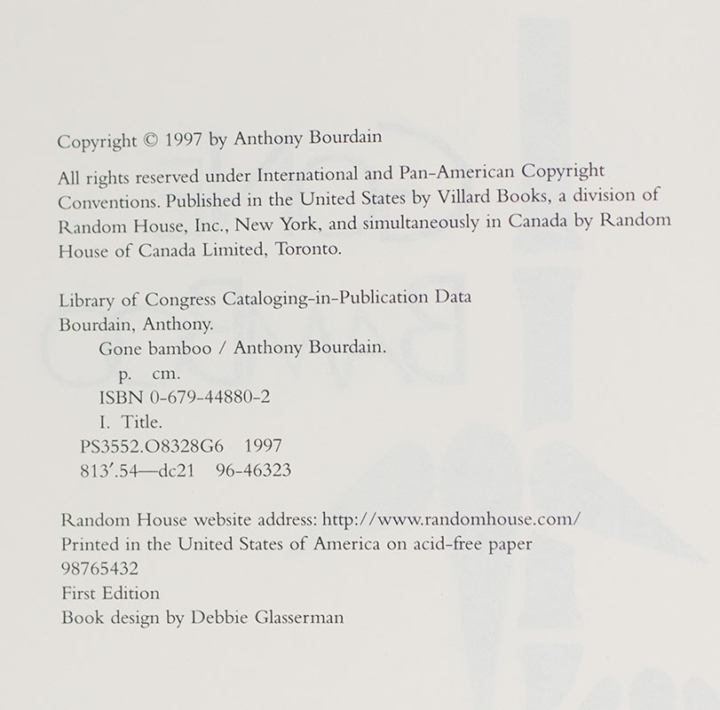 First edition of Gone Bamboo; signed by Anthony Bourdain