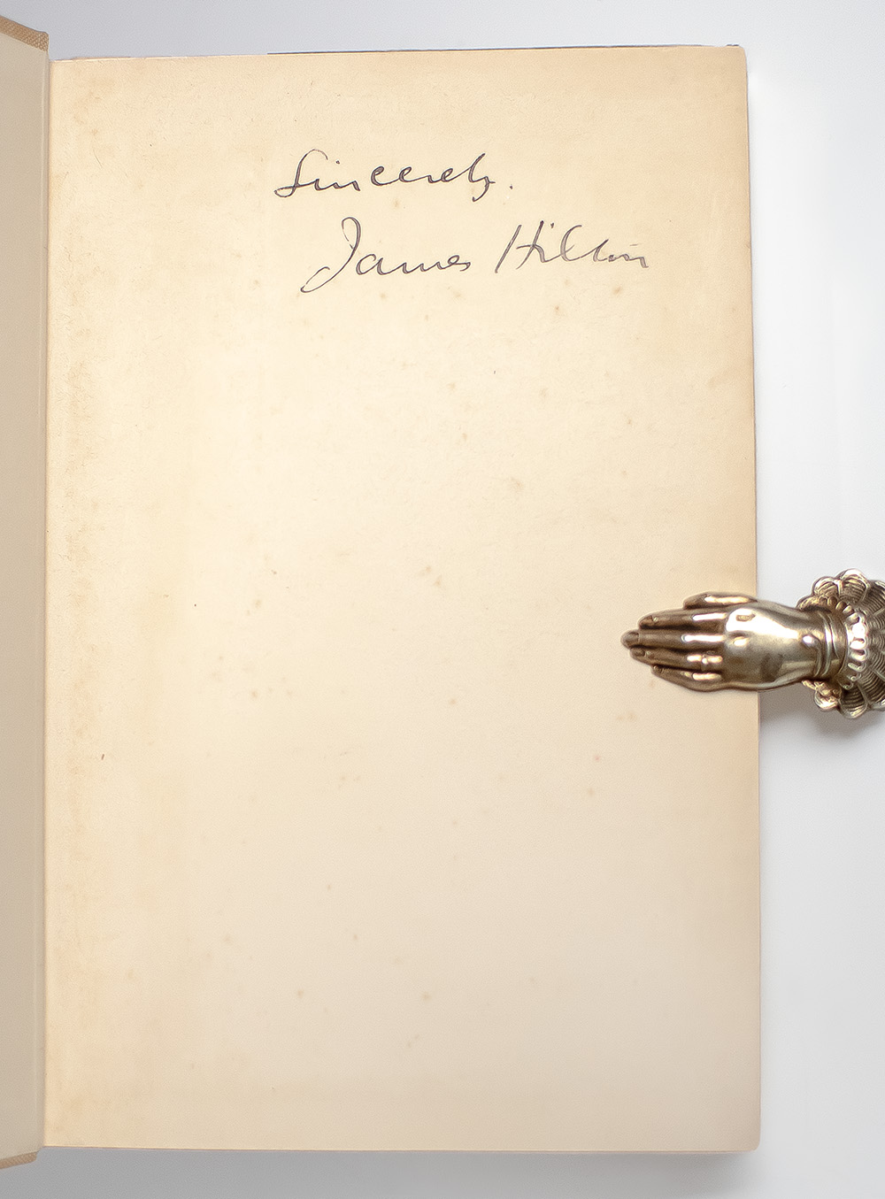 First edition of Hilton's classic novella about a beloved schoolteacher. Octavo, original cloth. Boldly signed by the author on the front free endpaper, "Sincerely. James Hilton." Very good in a very good dust jacket.