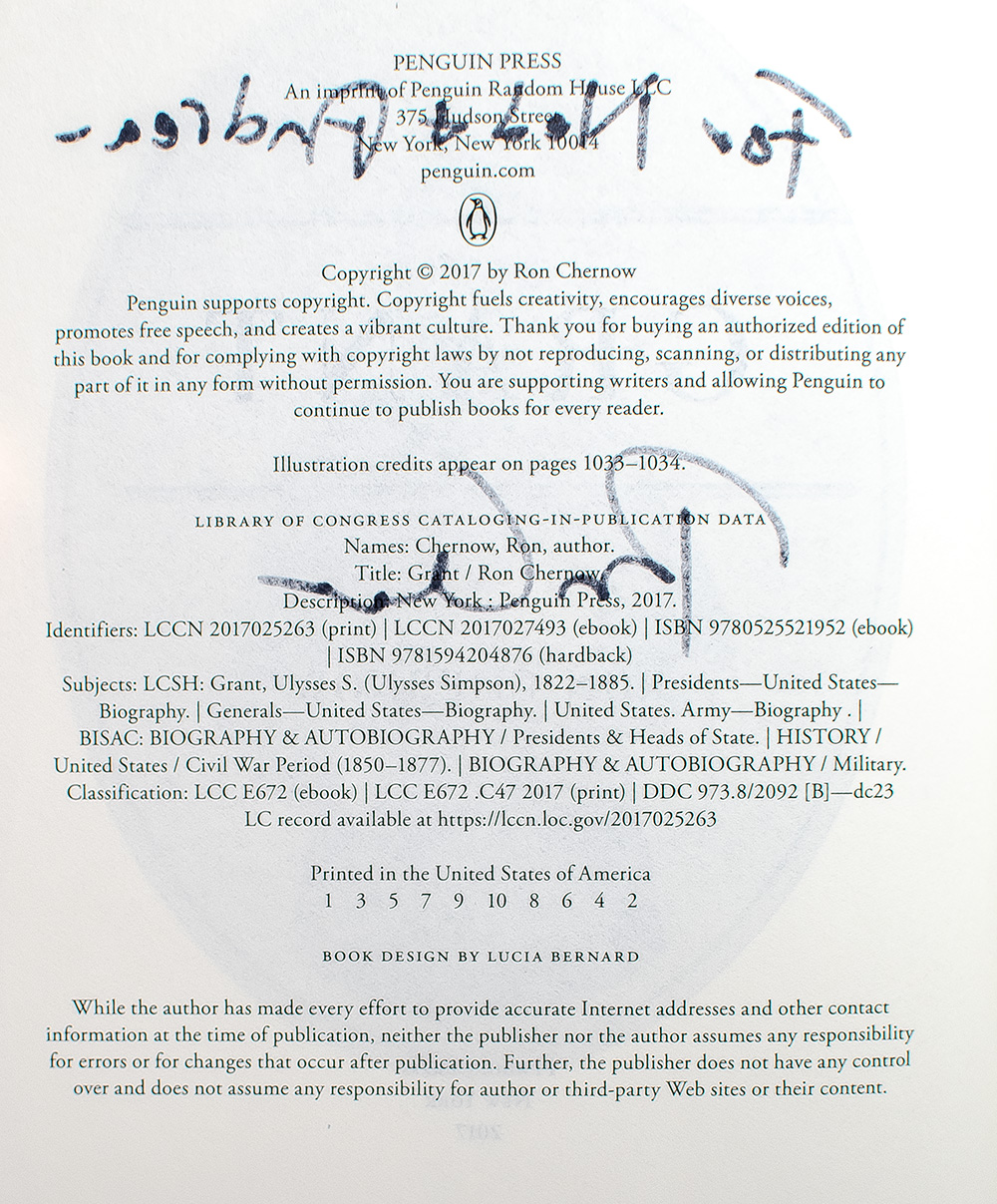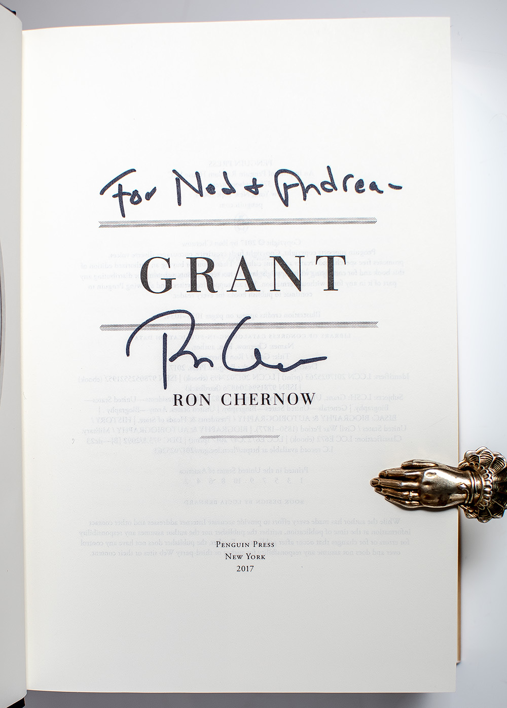 “I am a verb instead of a personal pronoun. A verb is anything that signifies to be; to do; or to suffer. I signify all three": First Edition of Grant; Inscribed by Ron Chernow
