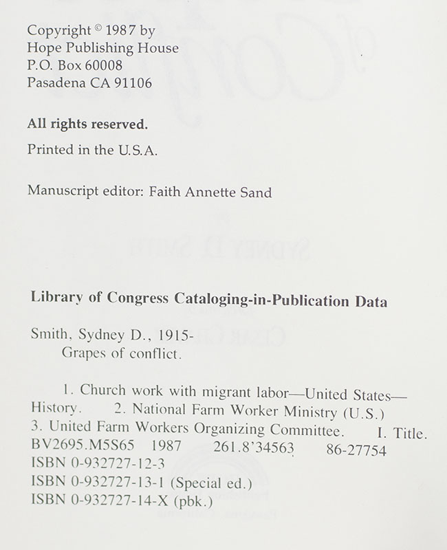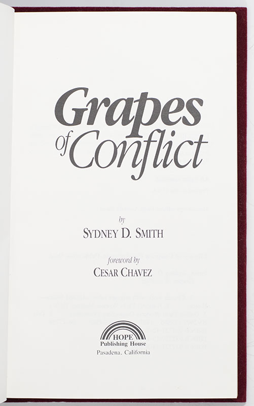 Signed limited edition of Sydney D. Smith's Grapes of Conflict; signed by Caesar Chavez, Chris Hartmire and Sydney Smith