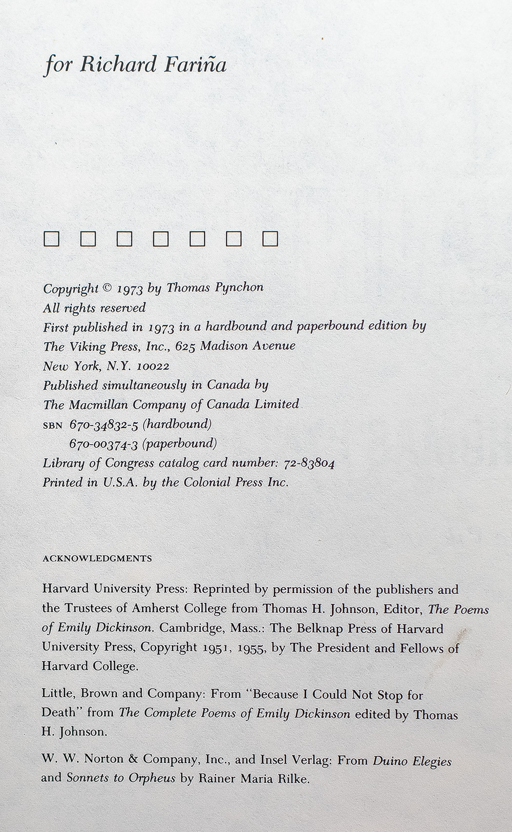 “If they can get you asking the wrong questions, they don’t have to worry about answers”: First Edition of Thomas Pynchon's Gravity's Rainbow; Finely Bound by the Harcourt Bindery