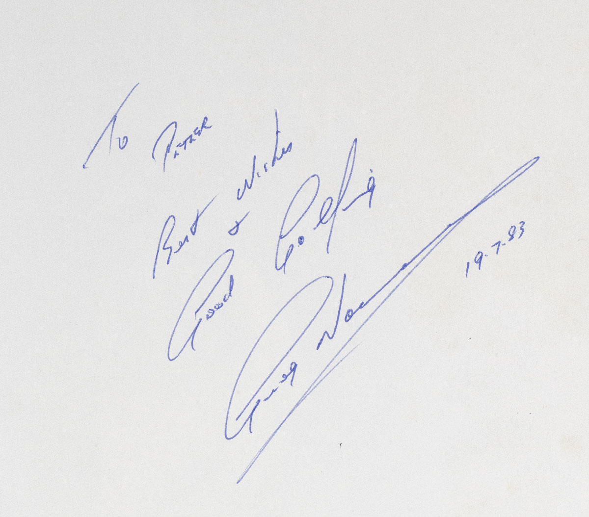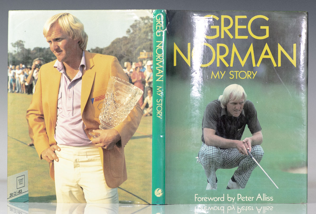 First edition of the legendary golfer's autobiography. Octavo, original cloth, illustrated. Presentation copy, inscribed by the author in the year of publication on the front free endpaper, "To Peter Best Wishes and Good Golfing Greg Norman 19.7.83." Written with Don Lawrence. Foreword by Peter Alliss. Near fine in a near fine dust jacket.
