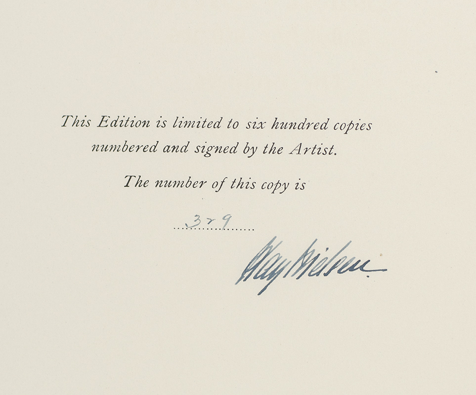 Signed limited first edition of this classic work. Quarto, original three quarters orange cloth over marbled boards, patterned endpapers. Number 329 of 600 copies signed by Kay Nielsen. Illustrated by Kay Nielsen with 12 mounted color plates, and black and white illustrations. In near fine condition. Housed in a custom slipcase. An exceptional example.