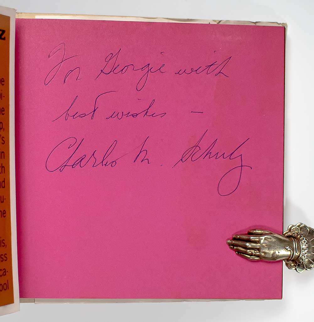 First edition of Charlie Brown and the gang's words on happiness, with 30 Peanuts cartoons by Schulz. Small octavo, original boards. Presentation copy, inscribed by the author on the front free endpaper, "For Georgie with best wishes- Charles M. Schulz." Near fine in a near fine dust jacket.