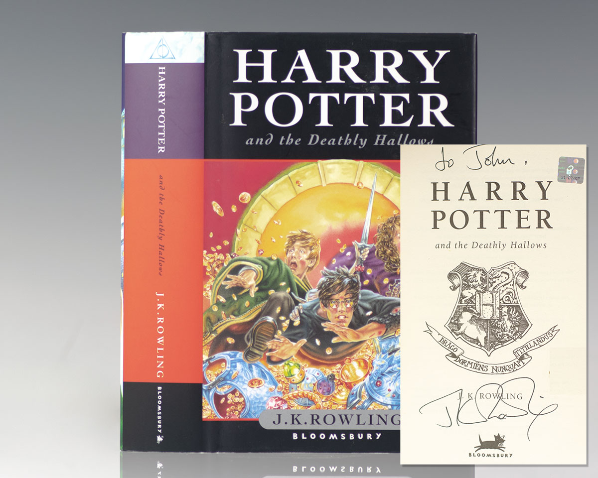First edition of the seventh and final novel in Rowling's immensely popular Harry Potter series. Octavo, original illustrated boards. Presentation copy, inscribed by the author on the title page, "To John J.K. Rowling." With the author's hologram to the title page. Fine in a fine dust jacket. Cover illustrations by Jason Cockcroft.