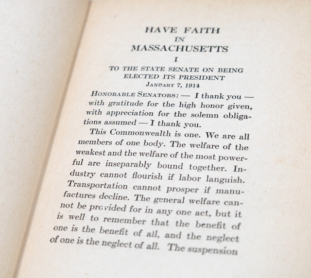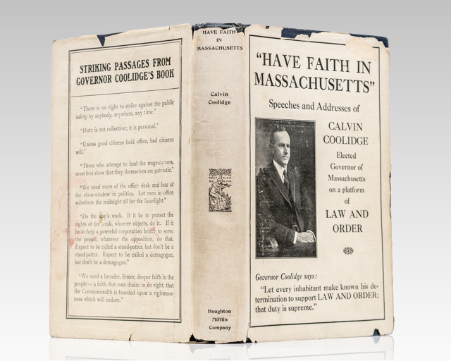 Calvin Coolidge's Have Faith in Massachusetts; inscribed by him and in the rare original dust jacket