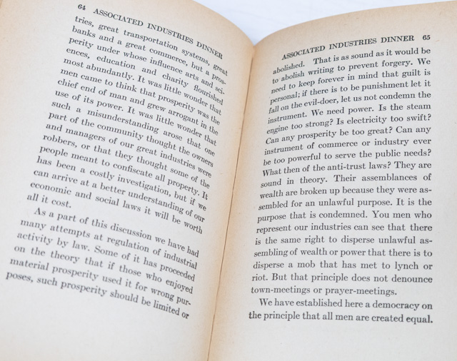 Second enlarged edition of this collection of speeches. Octavo, original cloth, tissue-guarded frontispiece of Coolidge. Presentation copy, boldly inscribed by the author on the half-title page, "To William F. Prindle With regards, Calvin Coolidge Aug 1920." Very good in the rare original dust jacket which is in good condition with chipping to the extremities. Rare in the original dust jacket and signed.