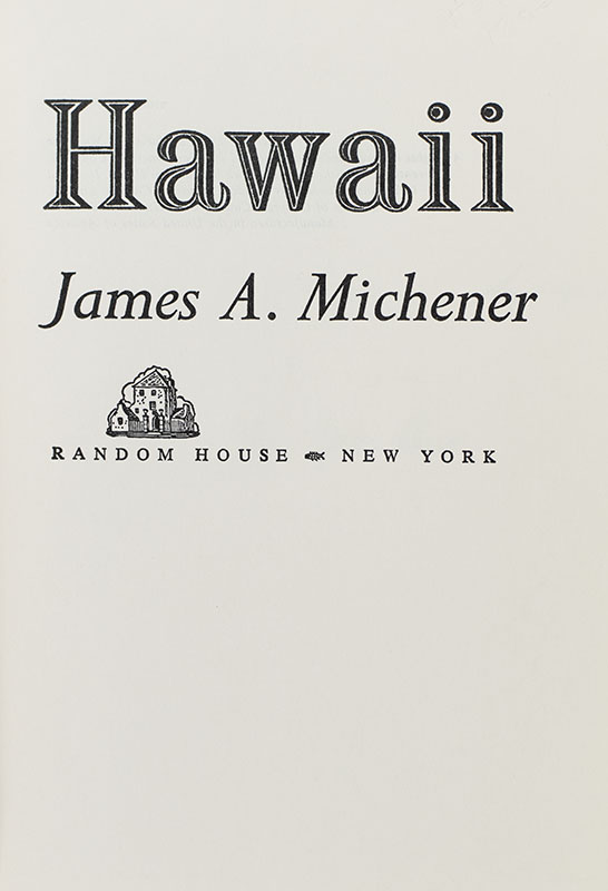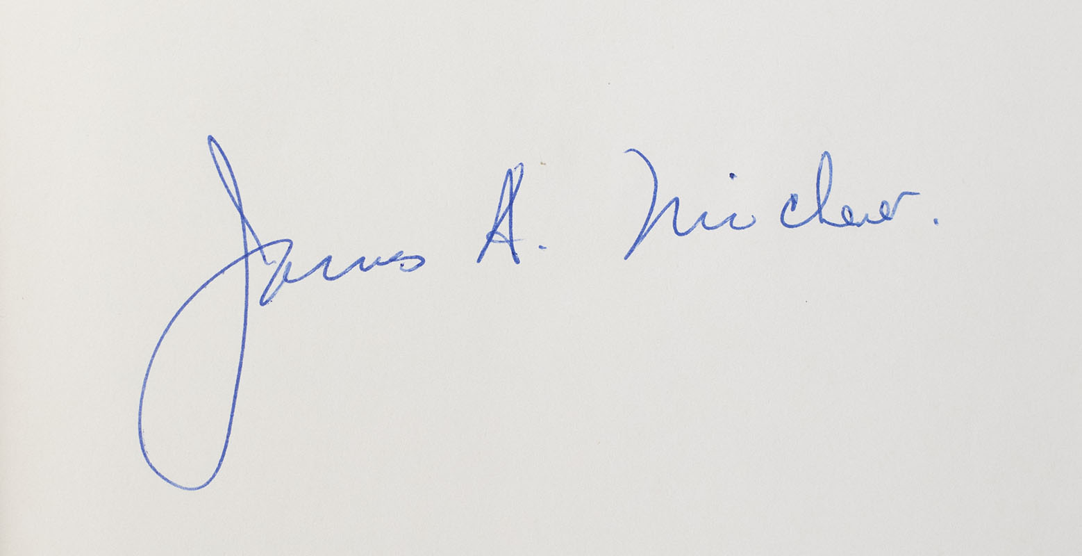 Early printing of this “mammoth epic of the islands" (The Baltimore Sun). Octavo, original cloth, cartographic endpapers. Signed by James A. Michener on the dedication page. Near fine in a near fine dust jacket, name on the dedication page.