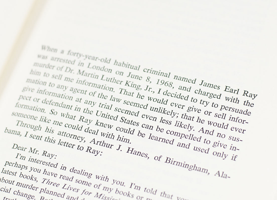 First edition of the sensational journalist's report on the assassination of Dr. Martin Luther King, Jr. Octavo, original cloth. Signed by William Bradford Huie on the half-title page. Fine in a near fine dust jacket. Jacket design by Wenk/Schwartz.