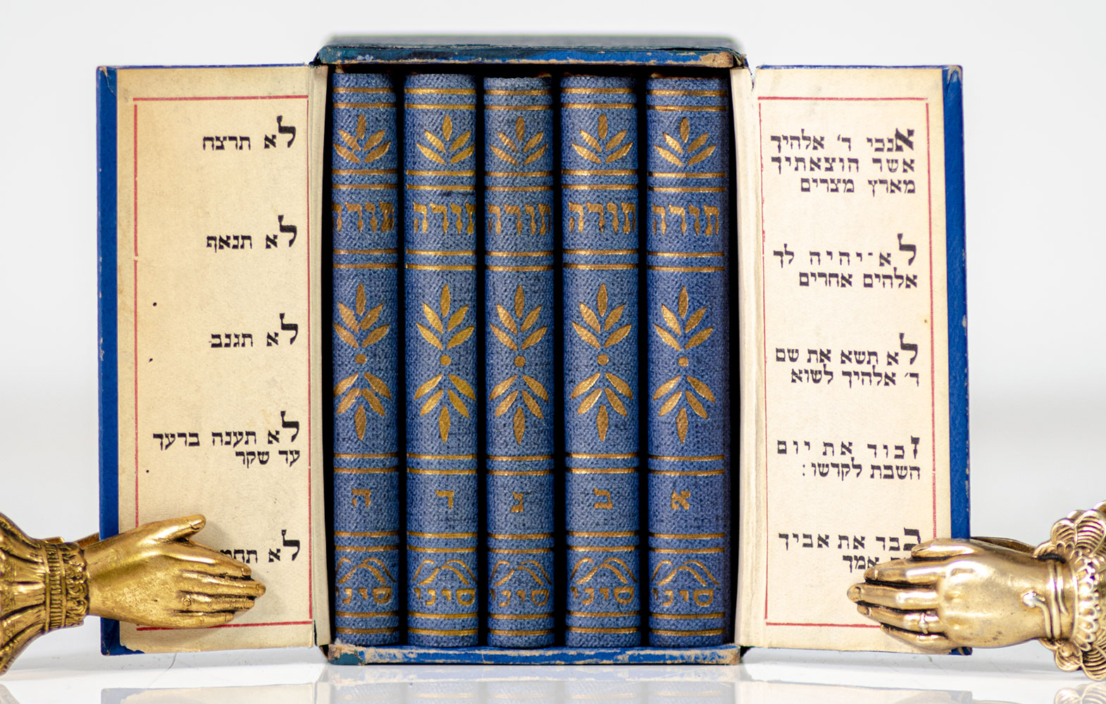 Rare Hebrew Chumash; housed in the original custom box printed in Hebrew with the Ten Commandments