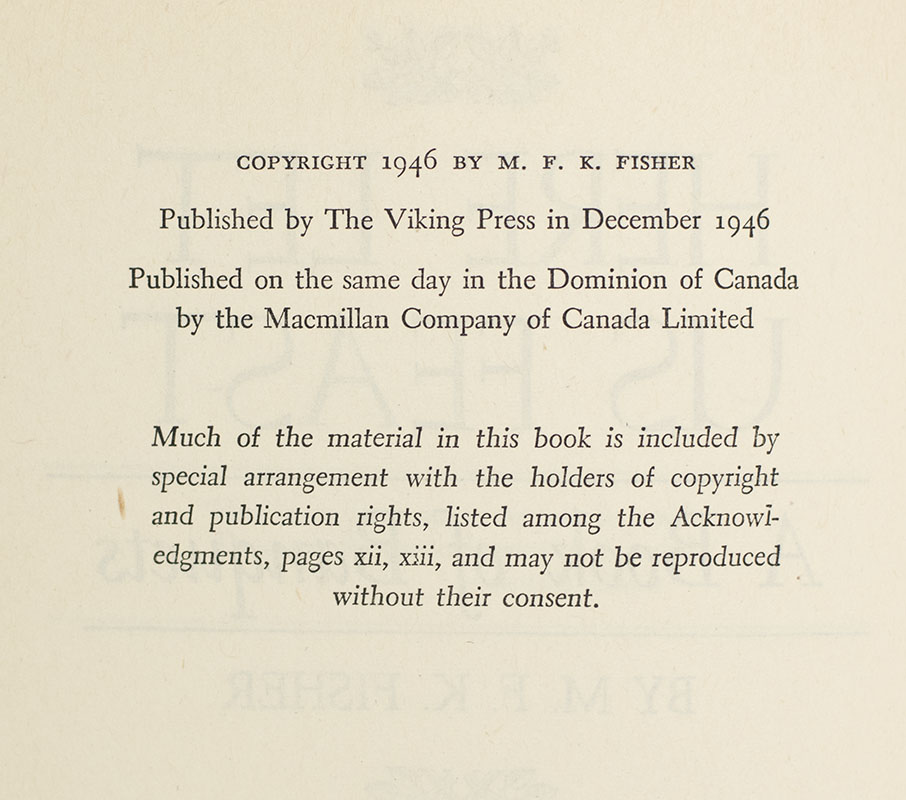 First Edition of M.F.K. Fisher's Here Let Us Feast; Signed by Her