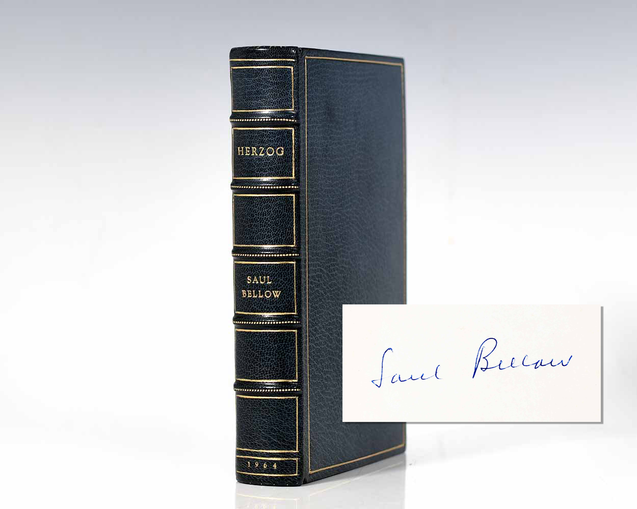 "I am out of my mind, it's all right with me, thought Moses Herzog": First Edition of Saul Bellow's Herzog; Signed by Him and Finely Bound by the Harcourt Bindery