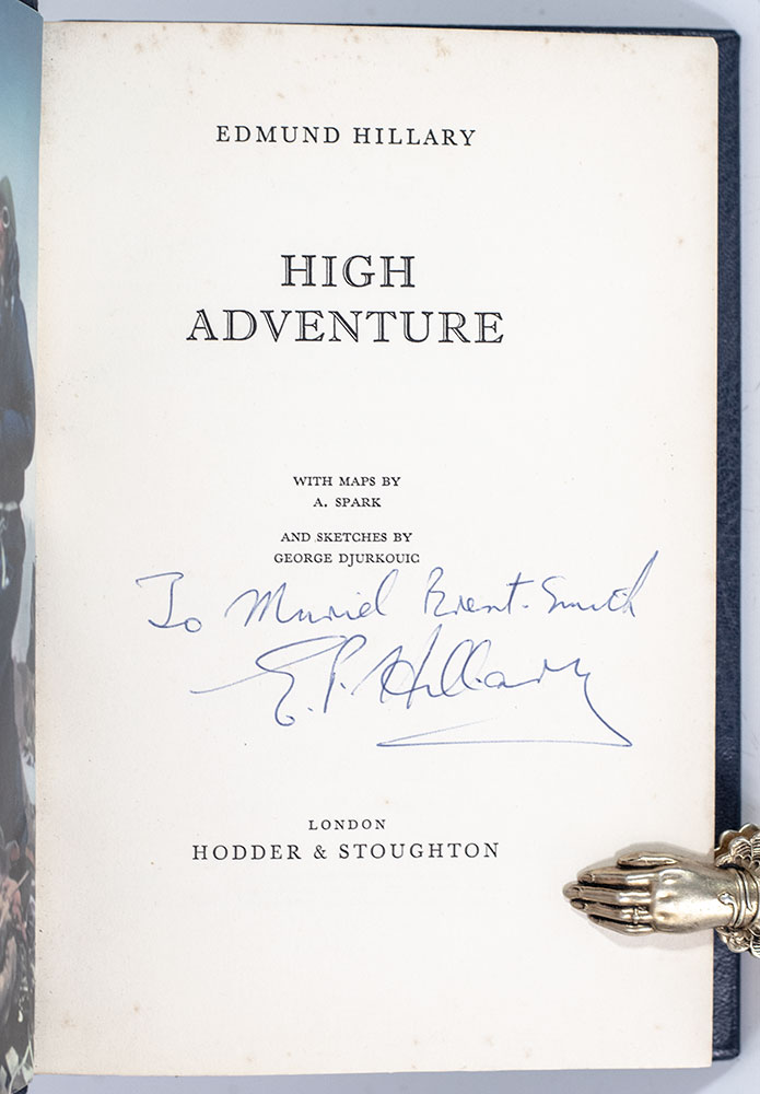 "I will come again and conquer you because as a mountain you can't grow, but as a human, I can": First Edition of High Adventure; Inscribed by Edmund Hillary