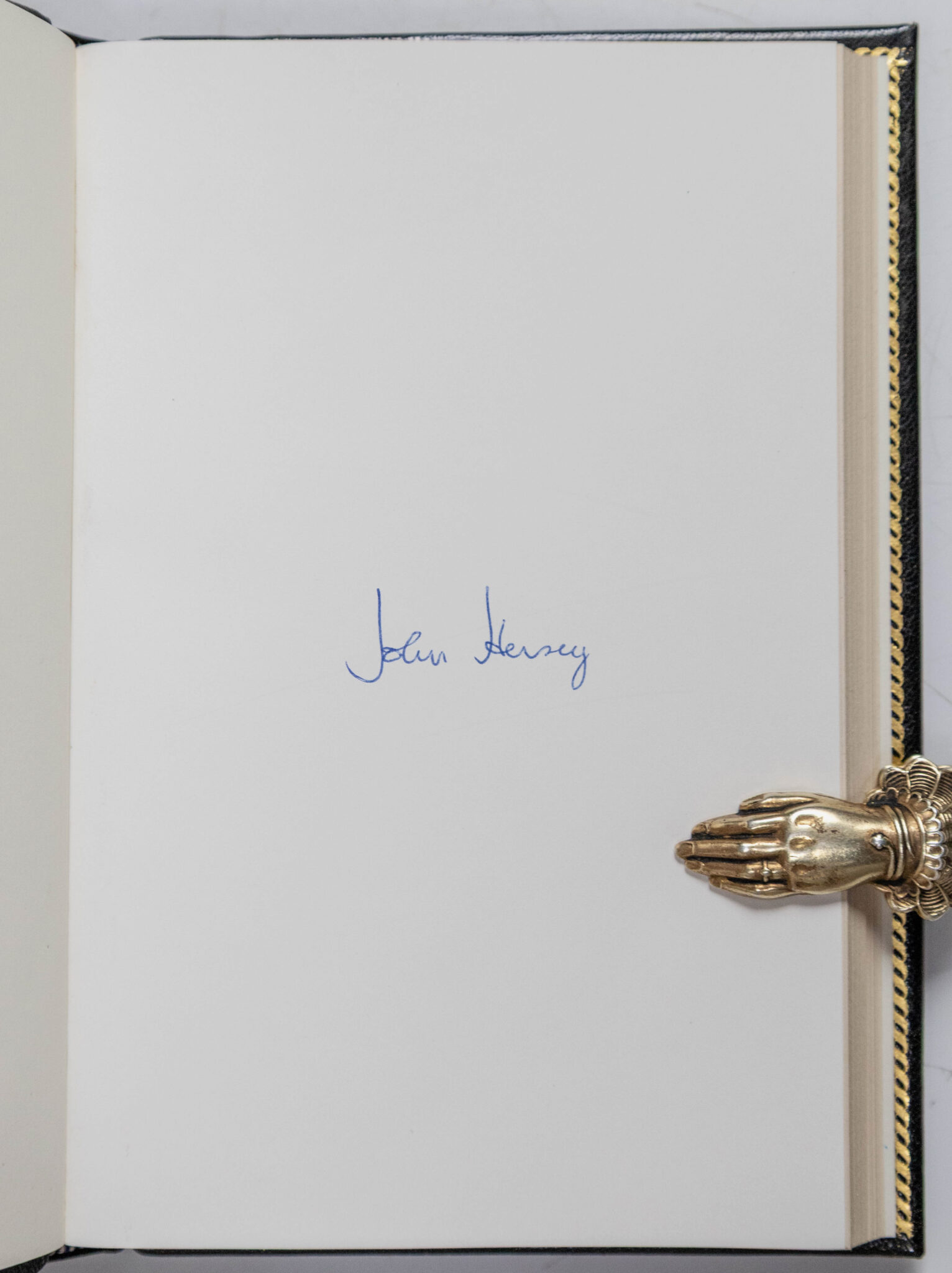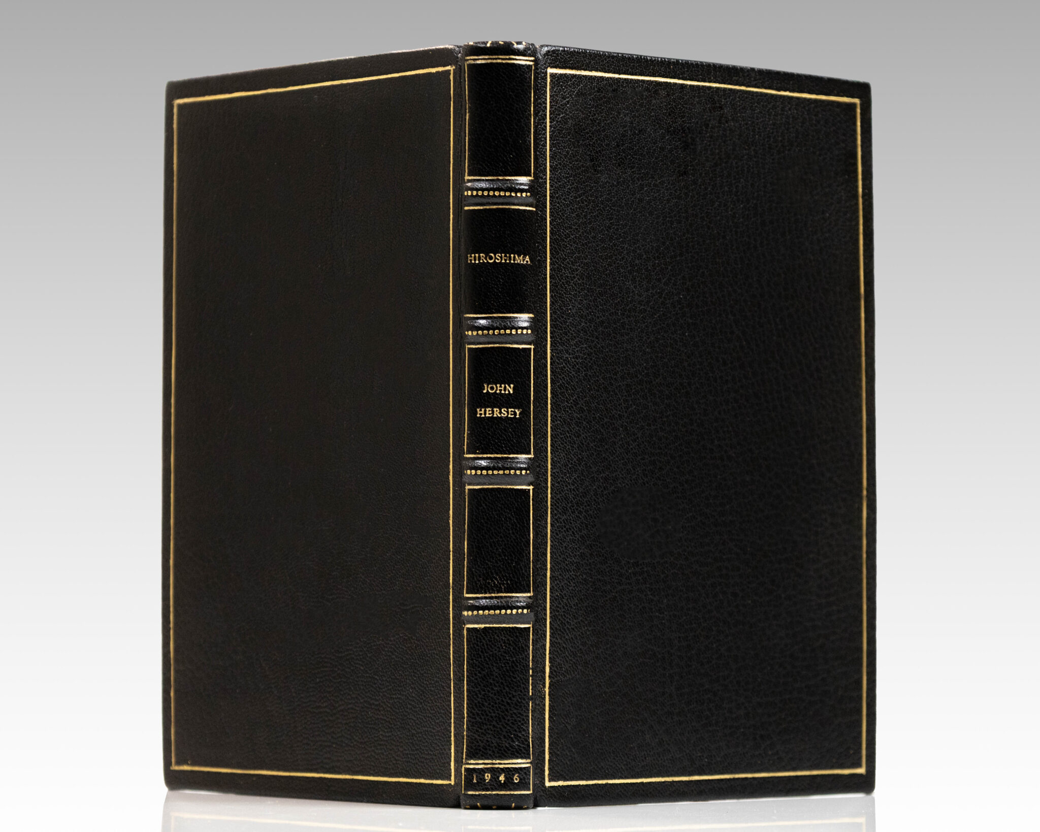 First edition of Hersey's classic work, which has sold over three million copies. Octavo, bound in full morocco by the Harcourt Bindery, gilt titles and tooling to the spine in compartments within raised gilt bands, gilt ruling to the front and rear panels, gilt inner dentelles stamp-signed by the Harcourt Bindery, marbled endpapers, all edges gilt. Boldly signed by John Hersey on a page bound in. In fine condition. An exceptional example.