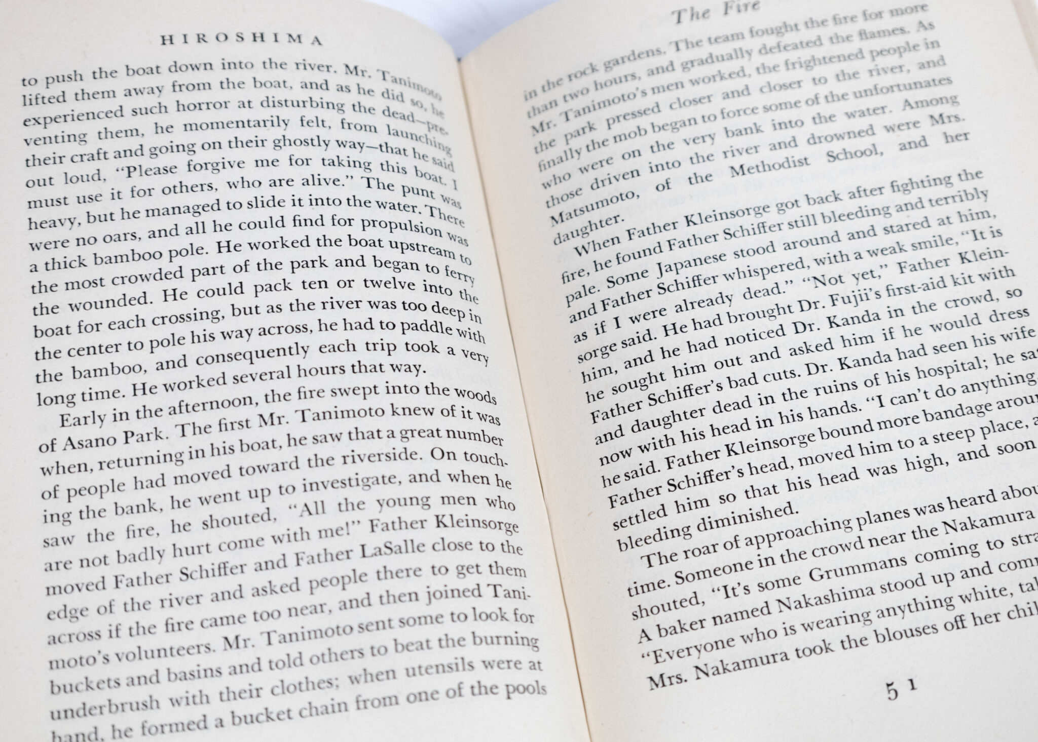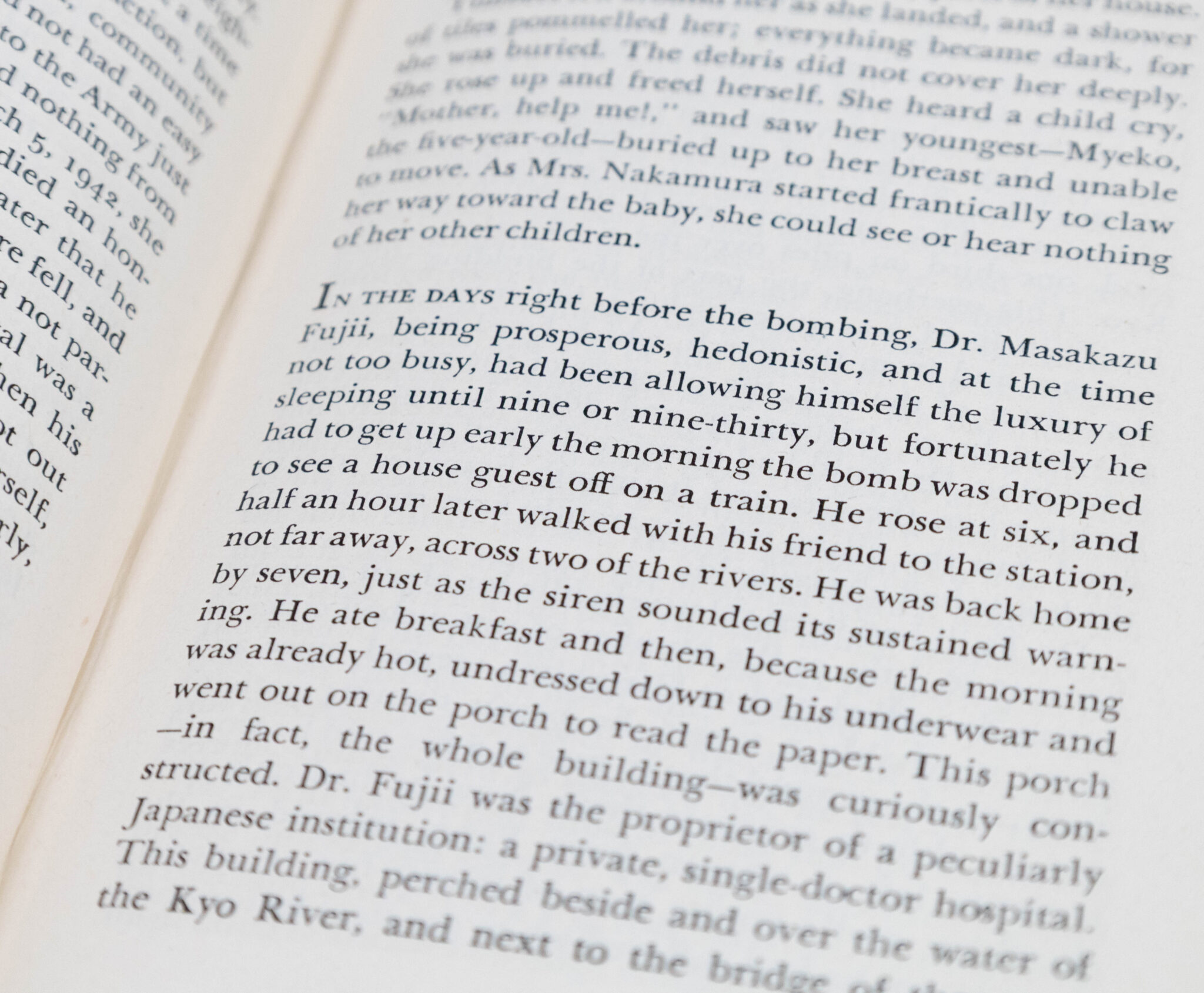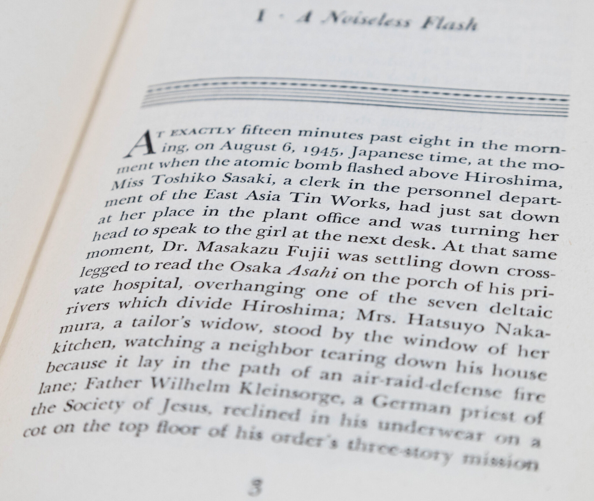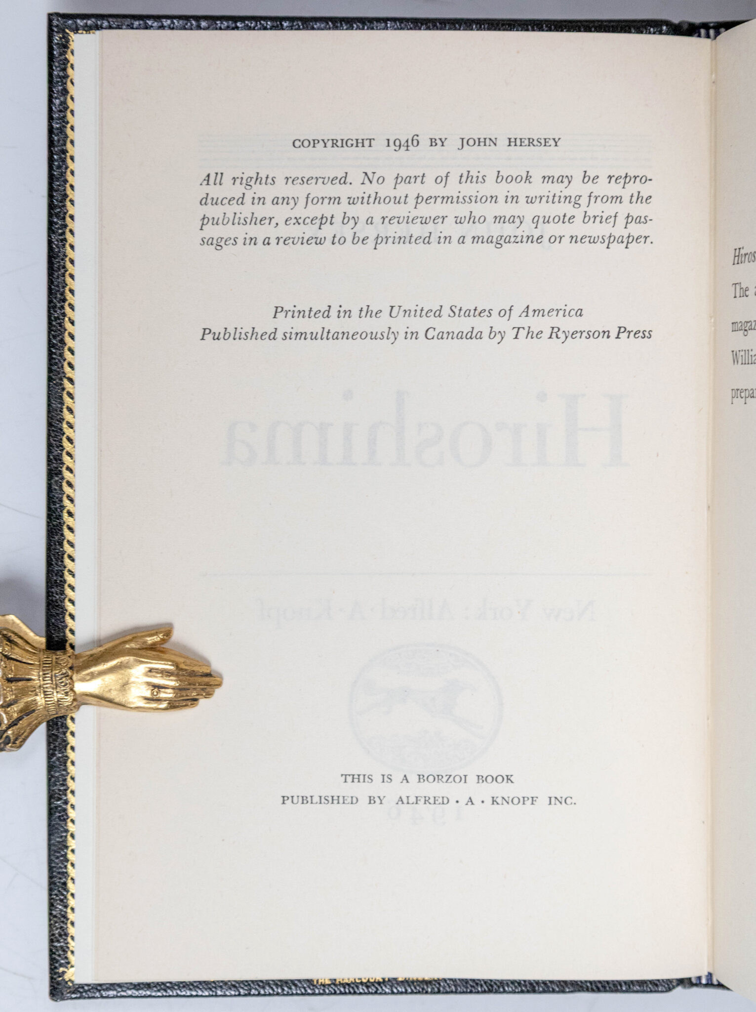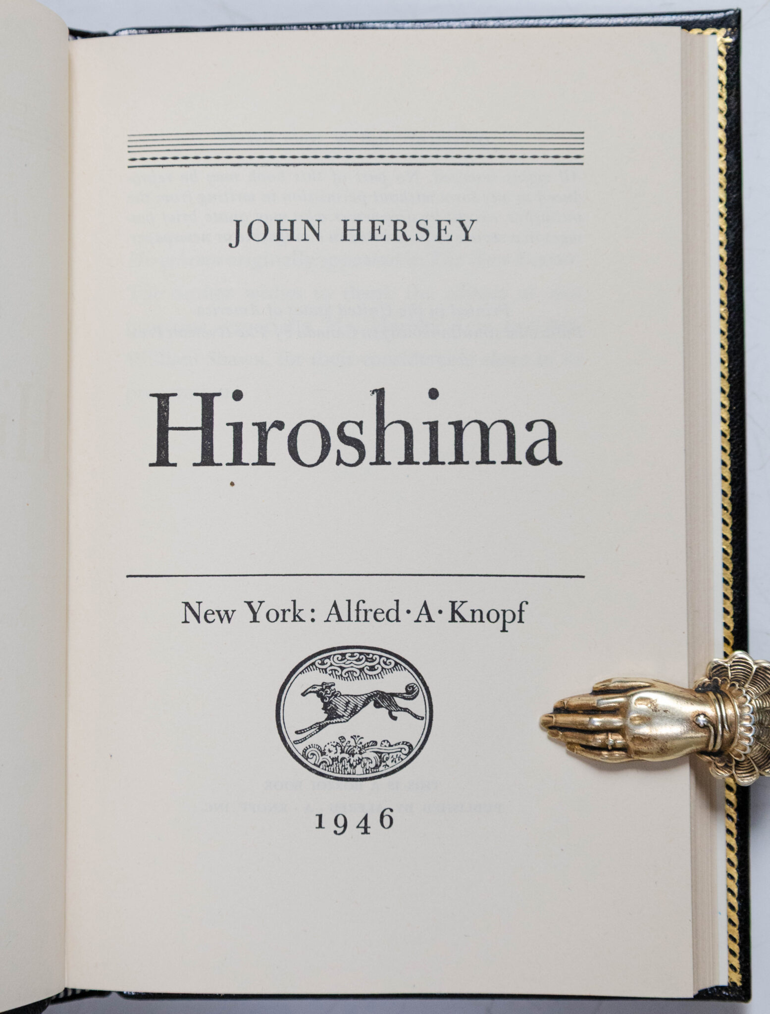 "The crux of the matter is whether total war...is justifiable, even when it serves a just purpose": First Edition of John Hersey's Hiroshima; Finely Bound by the Harcourt Bindery and Signed by Him