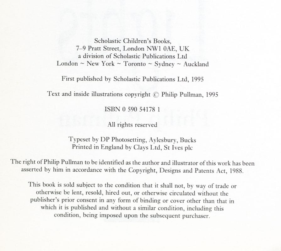 First edition of Pullman's first book in his acclaimed Dark Materials trilogy. Octavo, original cloth. Presentation copy, inscribed by the author on the half-title page, "For Robert, in the hope that you'll enjoy this fantasy Philip Pullman." Fine in a fine first issue dust-jacket with 'Point' on spine and '7-9 Pratt Street on lower rear jacket flap. Jacket illustration by David Scutt. Author photograph by Robin Matthews.
